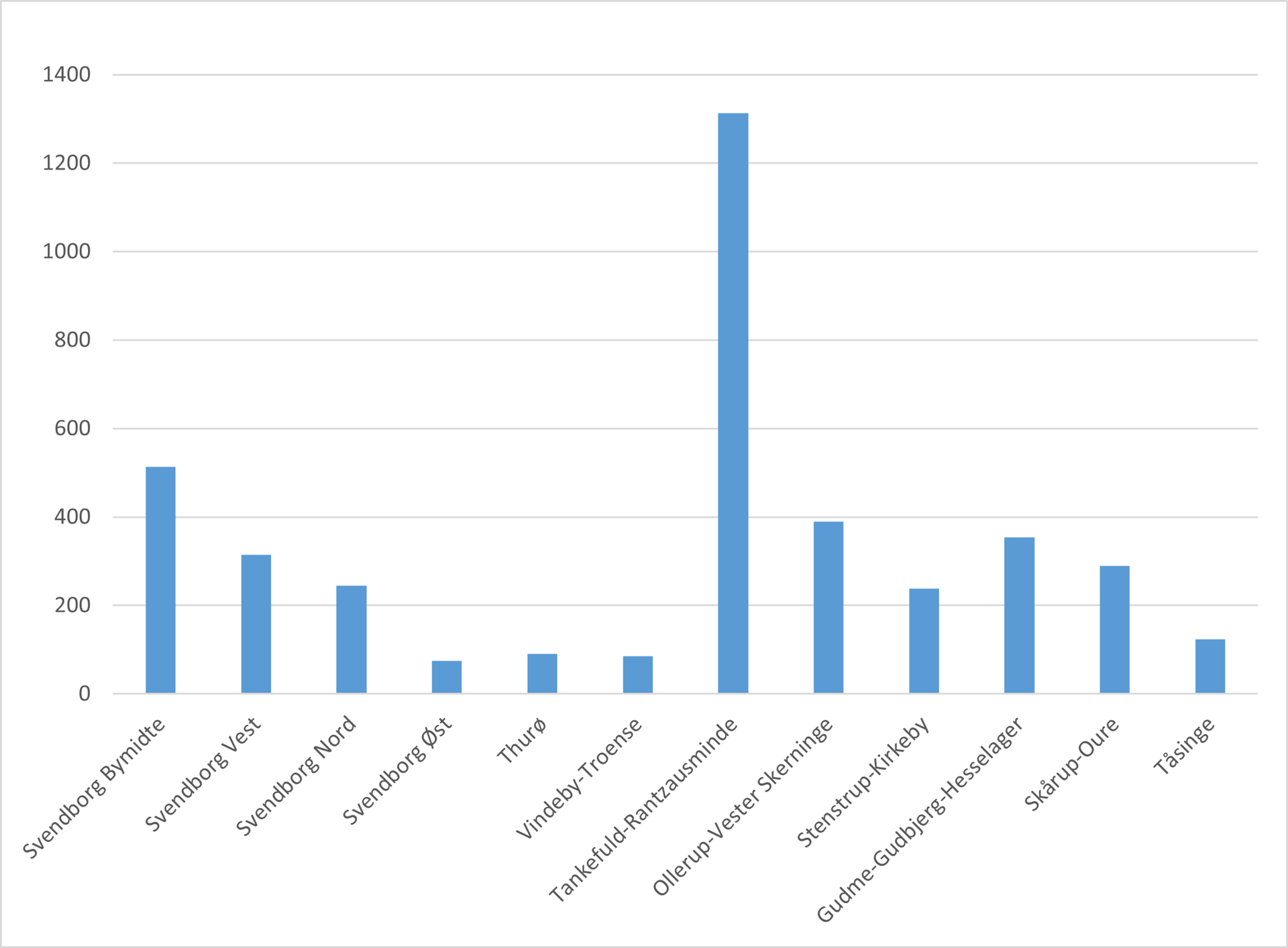 Der vil fortsat være udstykningsmuligheder i alle lokalområder, som det fremgår af ovenstående graf. Grafen er opgjort i antal boliger for hvert lokalområde.