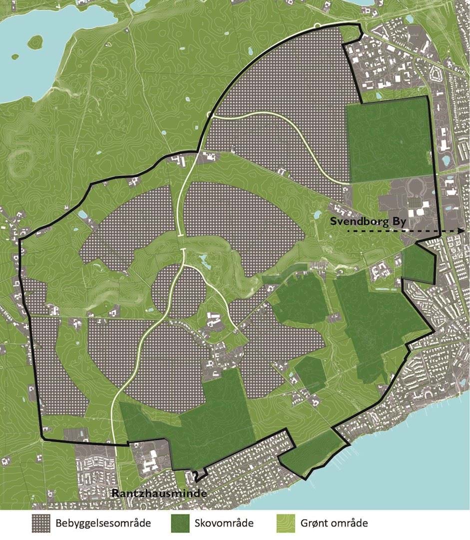 Landskabet, landbruget og den spredte bebyggelse i det store område bag Rantzausminde langs kysten skal rumme de nye by- og boligområder, og vil langsomt blive omdannet med nye veje, byggerier og landskabstiltag. Bydelen vil udvide sig i etaper, så de enkelte byområder gøres færdige inden et nyt område inddrages i byudviklingen.