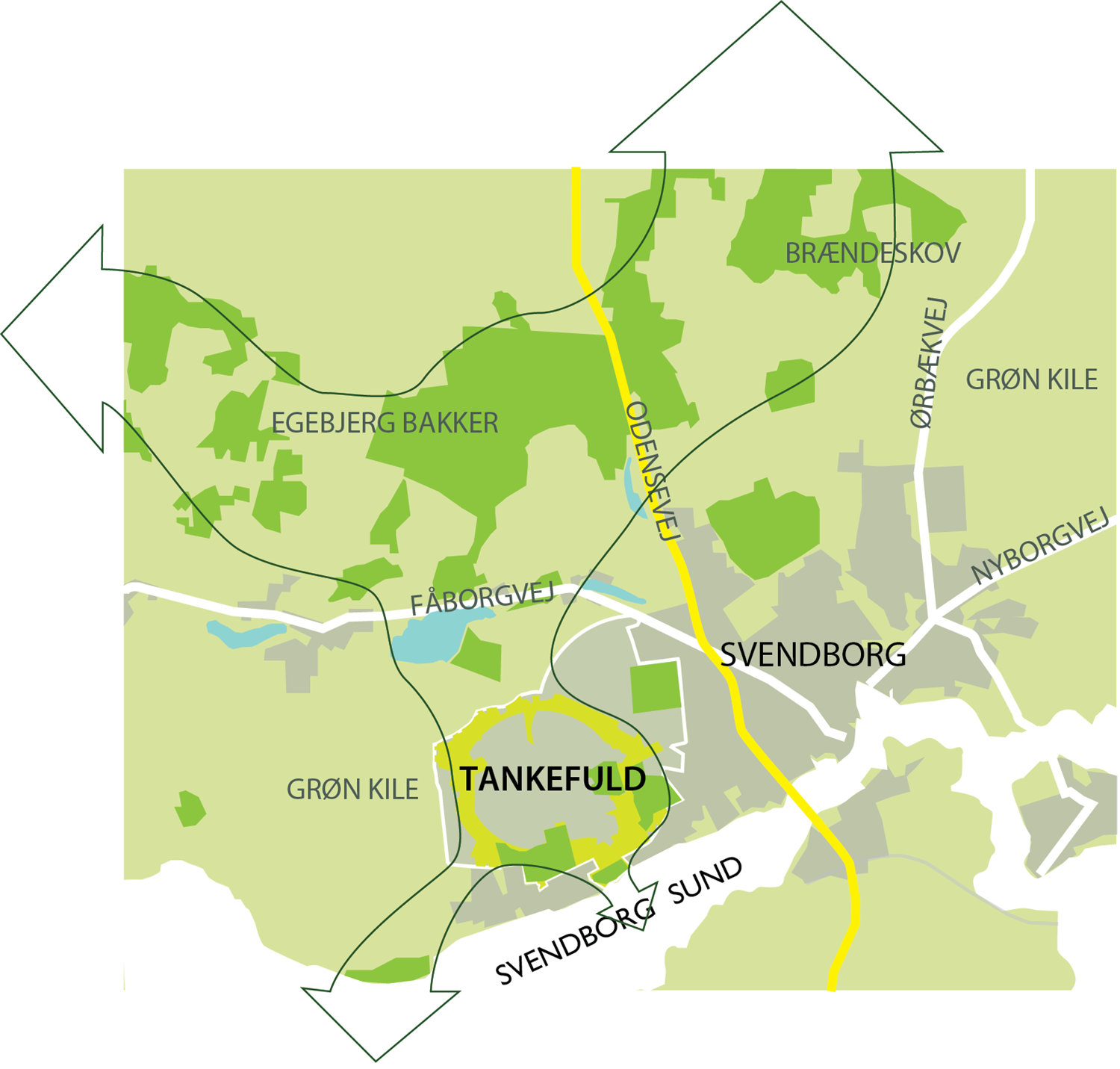 Tankefuld skal sammen med Rantzausminde og landsbyerne Egense og Skovsbo udgøre en ny blå og grøn bydel i det vestlige Svendborg.