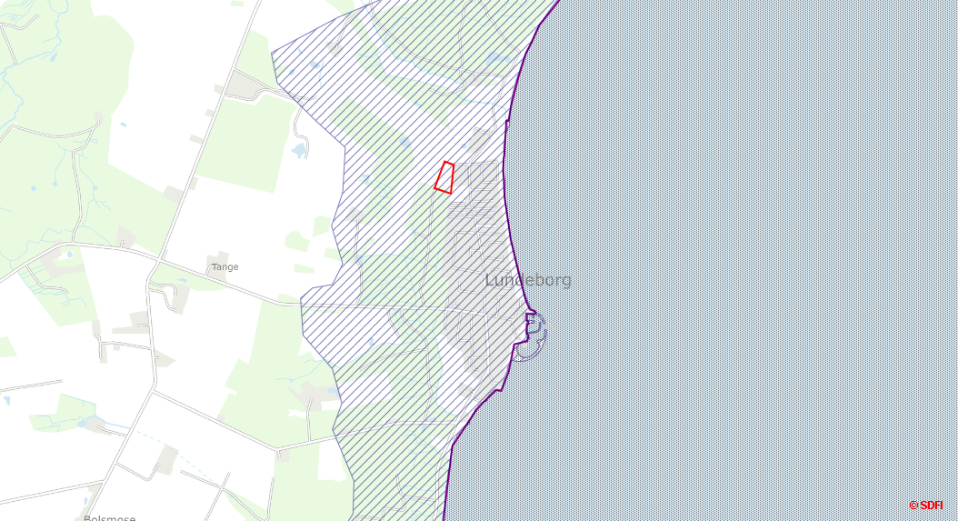 - Området er placeret, bag ved eksisterende byzone med bebyggelse, ca. 250 m fra kysten.