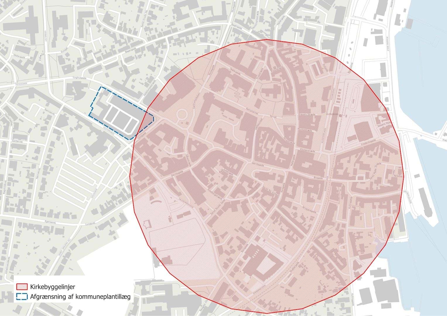 Planområdet er beliggende ca. 270 meter vest for Sankt Nicolai Kirke og Vor Frue Kirke.