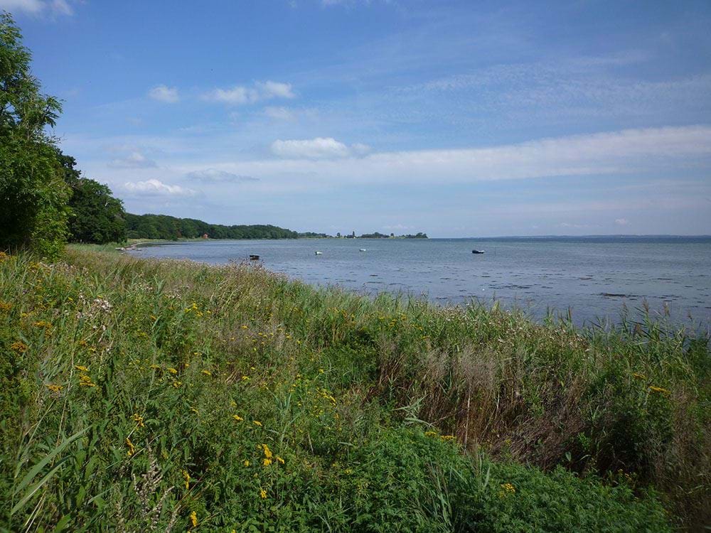 Kysten øst for Tiselholt med Elsehoved i horisonten.