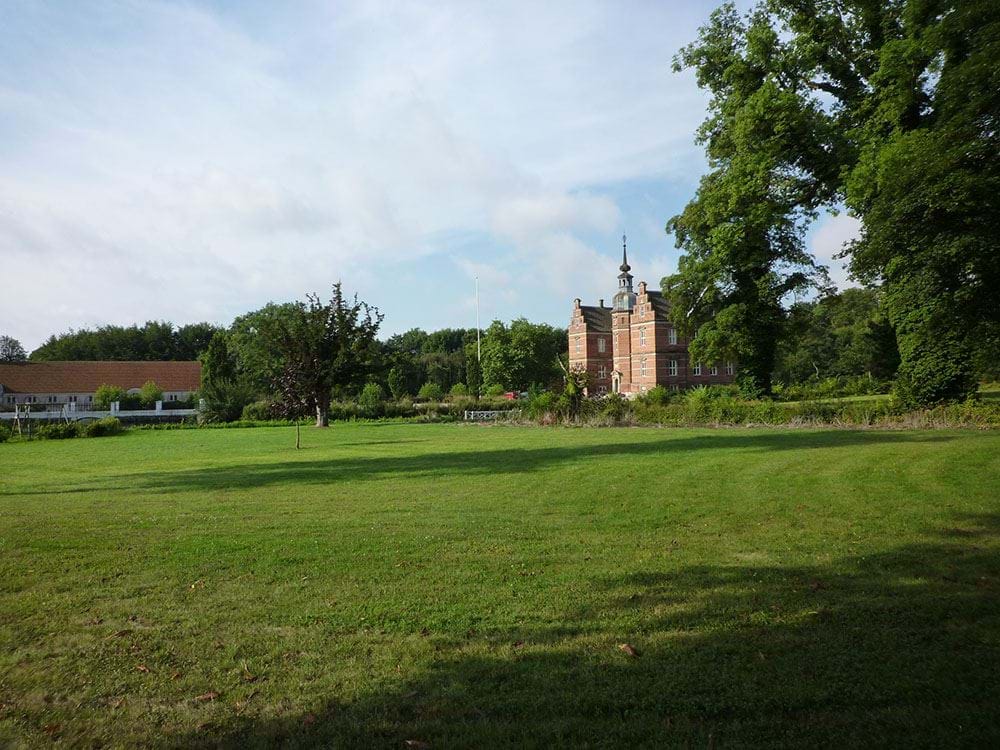 Hovedbygningen til Broholm ligger som et markant og oplevelsesrigt bygningsværks, der opleves tydeligt fra vejene omkring.