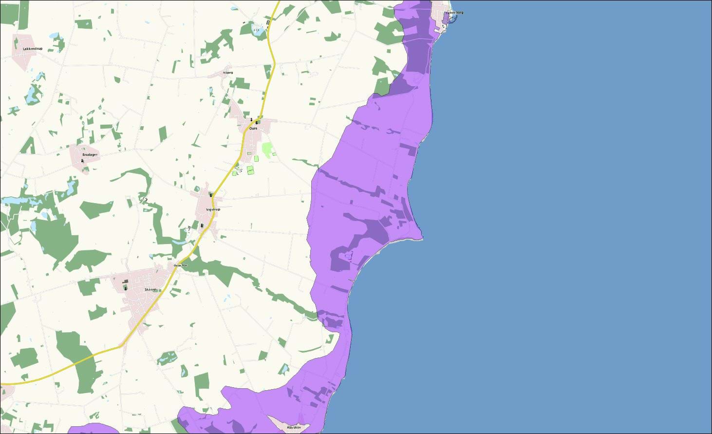 Samspillet mellem naturgrundlag og arealanvendelse er tydeligt med intensivt dyrkede markflader på den lerede moræne, kystnære skove og frugtplantager.