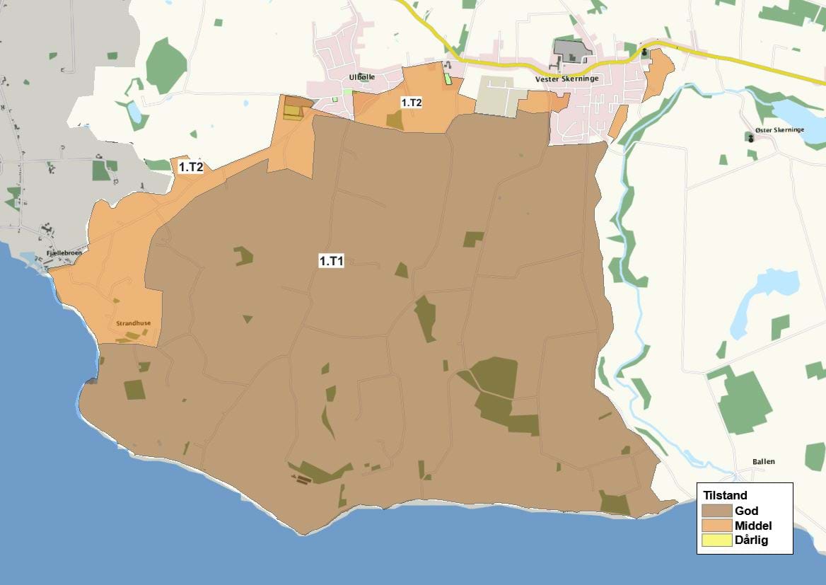Den vestlige del af området samt omkring Ulbølle og Vester Skerninge – 1.T2