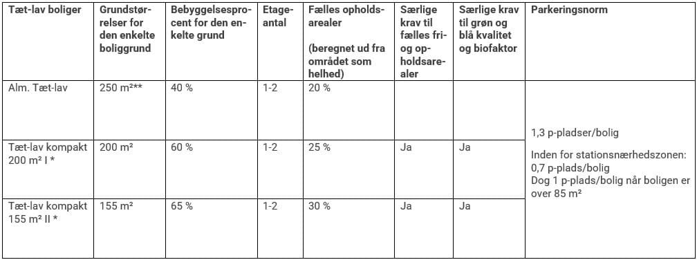 * Det skal fremgå af det enkelte rammeområde, at der er mulighed for at planlægge for tæt-lav kompakt I og tæt-lav kompakt II.