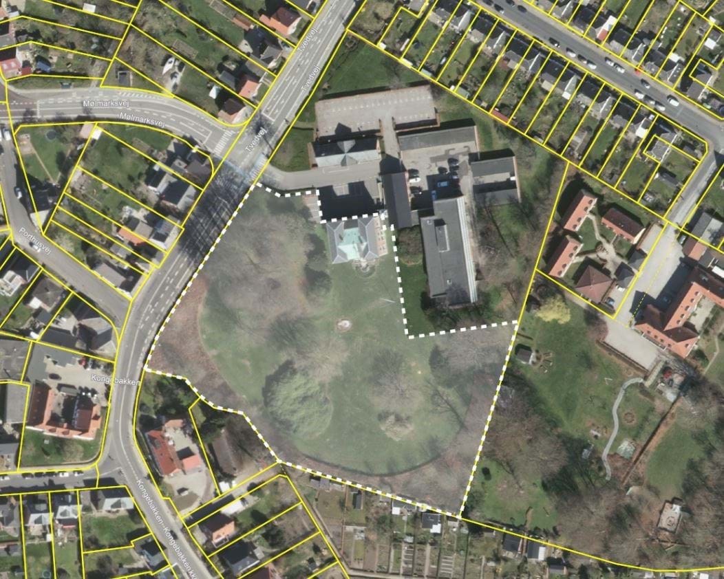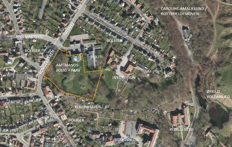 Lokalplanområdet er afgrænset til den del af matrikel nr. 34a, Svendborg Markjorder, der omfatter den tidligere amtmandsvilla og den tilhørende park. Grunden skråner mod Svendborgsund og ligger med et flot udsyn over by og vand. Området prydes af en stor grøn park med flotte gamle træer og på grundens højeste punkt ligger den bevaringsværdige amtsmandsvilla.