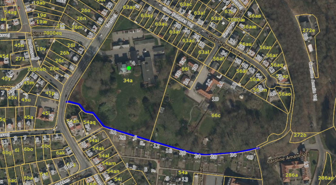 Stireservation udlagt mellem Tvedvej og offentlig sti ved Caroline Amalielundsskoven.