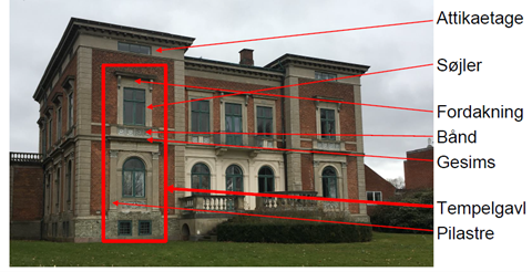 - Ny bebyggelse skal i højde og etageantal tilpasses amtmandsvillaen, det skrånende terræn og omgivelserne.
