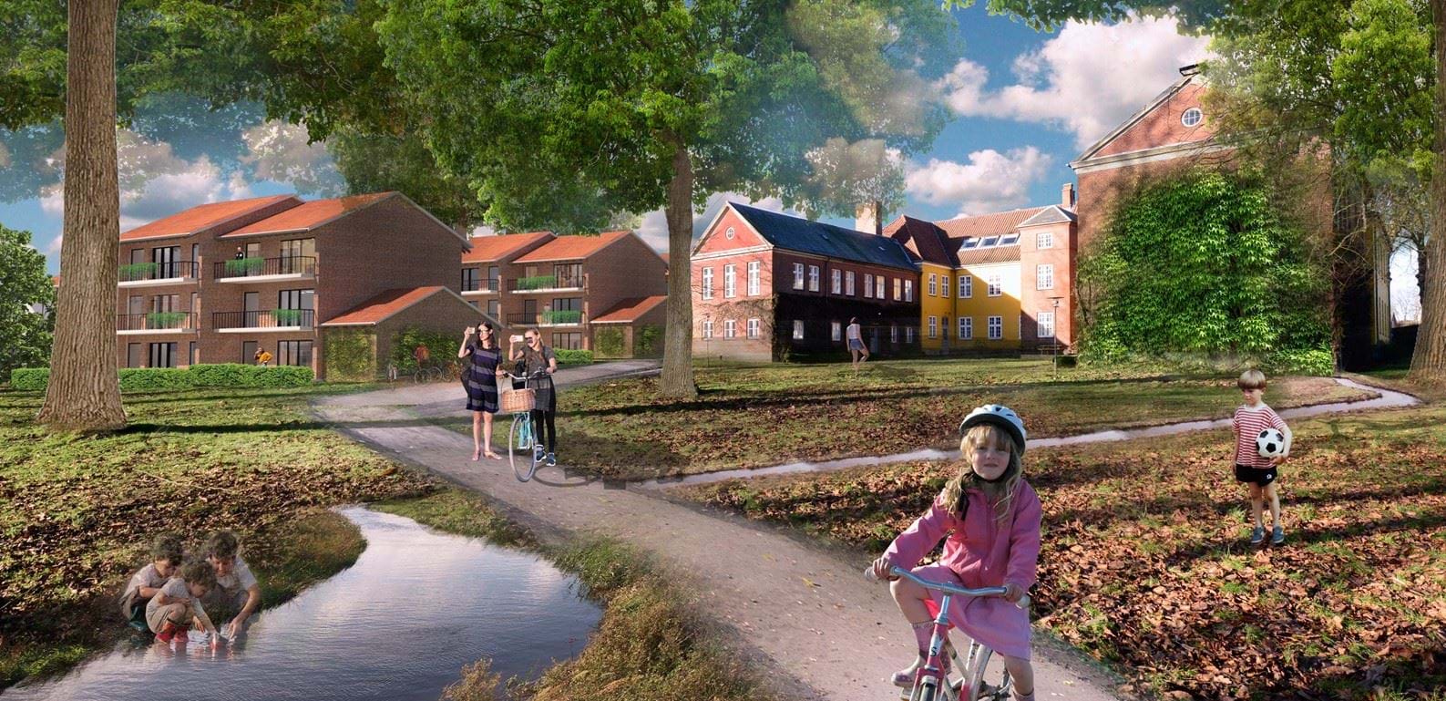 Figur 9 - Visualisering af skitseprojektet set fra den tidligere seminariehave mod nordvest