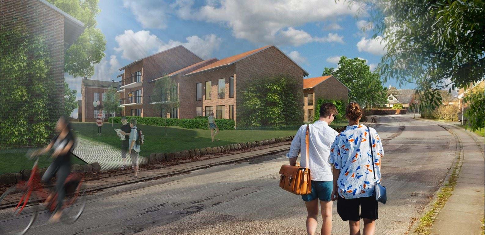Figur 4 - Visualisering af skitseprojektet set fra Skårup Vestergade mod syd