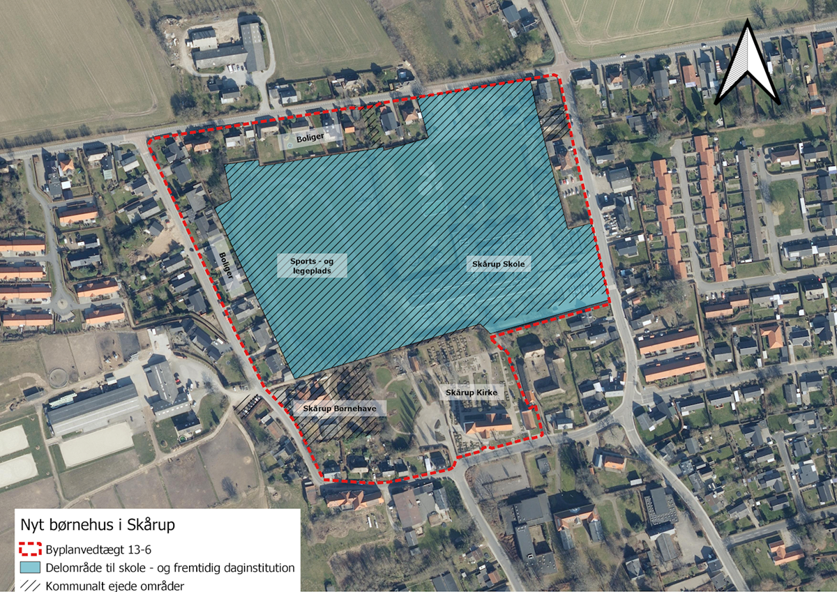 Området er allerede planlagt og omfattet af Byplanvedtægt 13-6 fra 1966. Området er udlagt til henholdsvis boligformål og offentlig formål i form af skole og kirkegårdsudvidelse. Skårup Skole er placeret indenfor det kommunalt ejede område, som er udlagt til skoleformål.