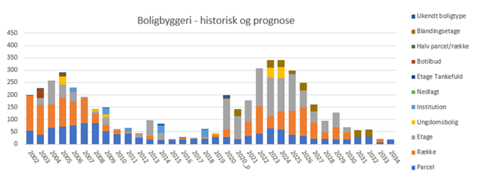 I sammenhæng med befolkningsprognosen, er det også vurderet at kommunes boligudbygning vil stige kraftigt de næste år. Denne udvikling vil selvfølgelig have en positiv effekt på mulig tilflytning, og derfor også befolkningsudviklingen.