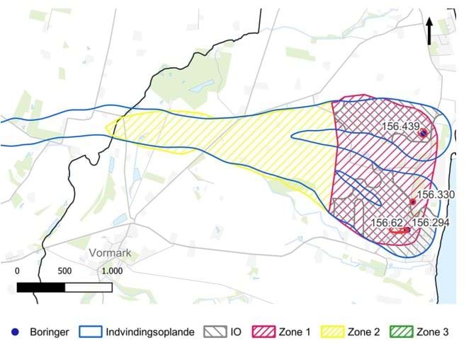 Store dele af nærområdet til indvindingsboringerne er afgrænset som IO. Med udgangspunkt i den modellerede grundvandsdannelse, herunder SGO, er der udpeget 2 prioriterede zoner.