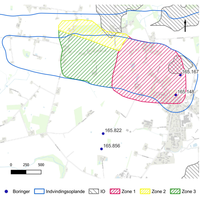Der er afgrænset et mindre IO nord for DGU nr. 165.167. Herudover er der, med udgangspunkt i grundvandsdannelsen, transporttid og SGO, afgrænset 3 prioriterede zoner.