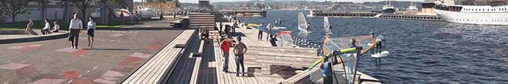”Den Blå kant” fremtidssikrer havneområdet i forhold til højvande/stormflod og regnvand/skybrud samtidig med, at området omdannes til hele byens friareal med fri og lige adgang for alle.