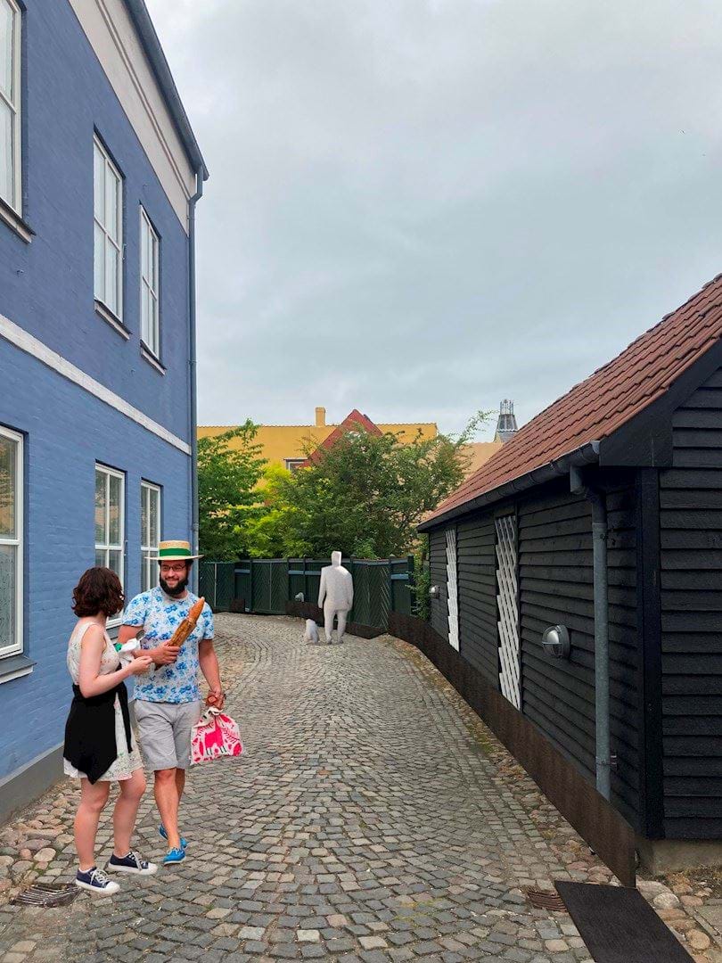 Fra hjørnet af Skt. Peder Stræde og langs baghaver og -gårde etableres en højvandsmur i facader og skel, hvor der i dag er plankeværker. På den måde etableres ikke nye barriereskabende tiltag i byrummene. I stedet anvendes det eksisterende skel som linjeføring. Muren bygges i beton og vil synes lavere jo længere mod Gåsetorvet man kommer, da terrænet stiger. Der etableres porte ved alle eksisterende låger og åbninger i skellet. Portene vil skulle lukkes ved højvandshændelser.