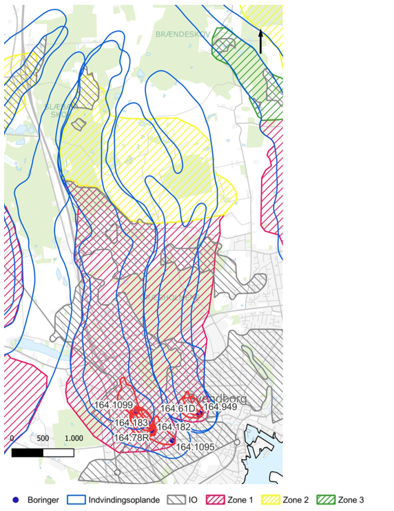 Der er afgrænset indsatsområder indenfor navnlig de sydlige dele af indvindingsoplandene tilhørende Byen kildeplads (tidl. Hovedværket).