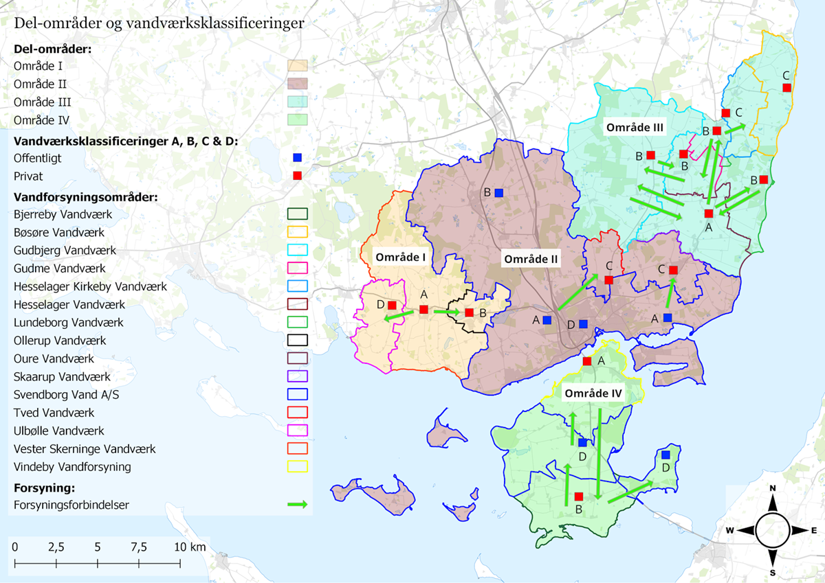 Der er som noget nyt indført en karaktergivning til vandværkerne fra A til D. Opdelingen er sket ud fra en samlet vurdering af det enkelte vandværks forsyningspotentiale, udfordringer med hensyn til vandkvaliteten og investeringer i forbedringer. Vandværkernes indbyrdes styrke mht. forsyningspotentiale har ikke udviklet sig væsentligt i sidste planperiode. Der har dog de seneste år været udfordringer med pesticider i grundvandet. Det er især det enkelte vandværks reaktion på problemstillingen, som har ført til, at der er behov for en differentiering mellem vandværkerne. Hvor der har været store overskridelser, har vandværkerne været nødsaget til at etablere nye boringer, men hvor der har været mindre overskridelser, har der været mindre velvilje til at etablere nye boringer. De vandværker, som har udtrykt et ønske om at blive nedlagt eller, som ikke kan producere vand, der overholder grænseværdien, har fået den laveste score.